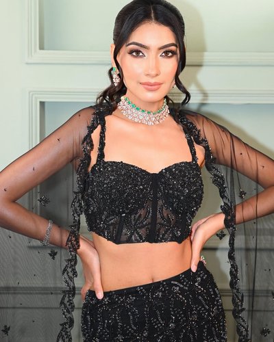 Mermaid skirt with corset blouse & dupatta.