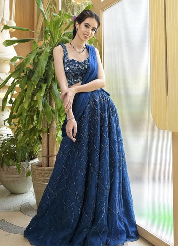 Pre-stitched lehenga saree with blouse.