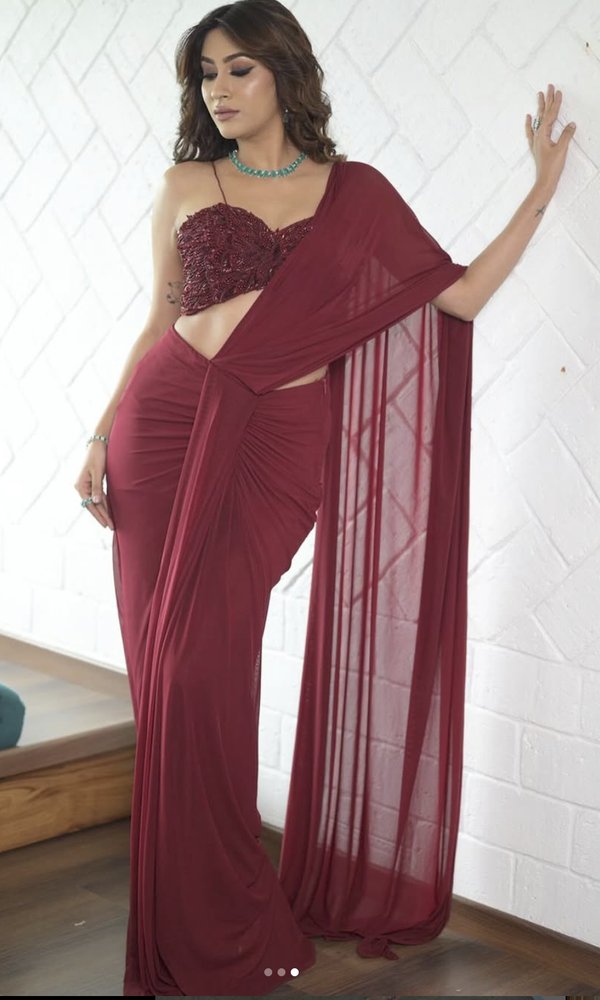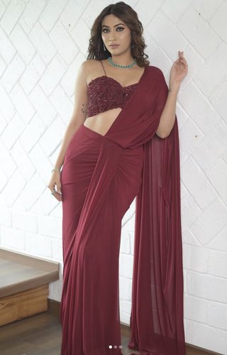 Pre-stitched saree with 3d embellished blouse.